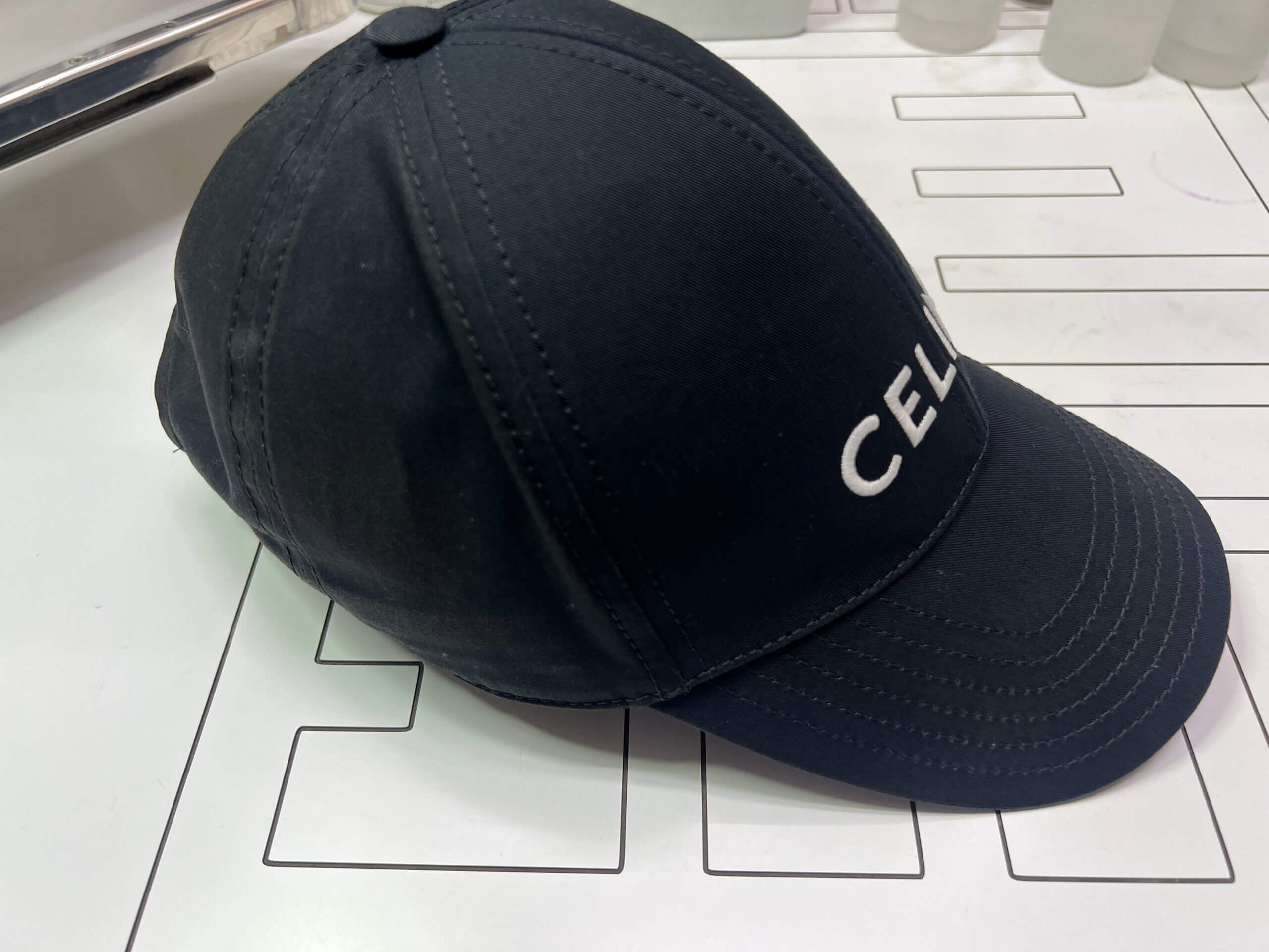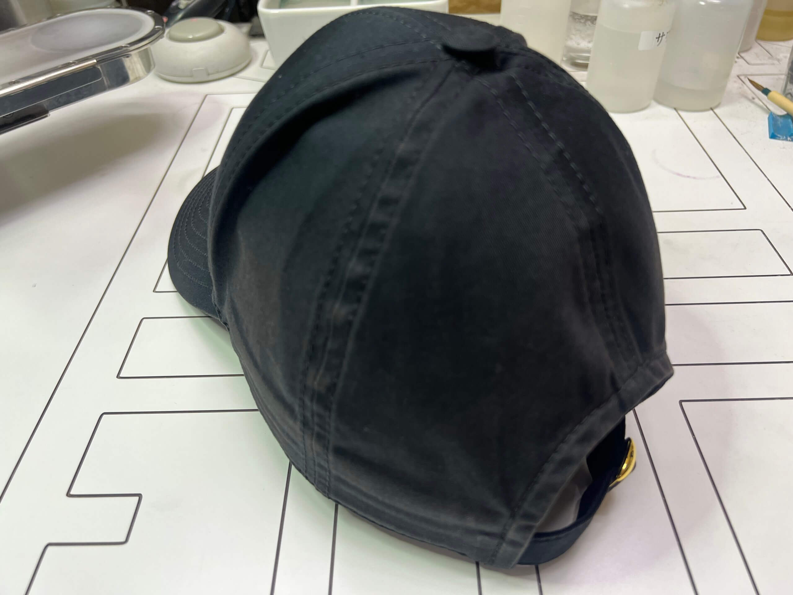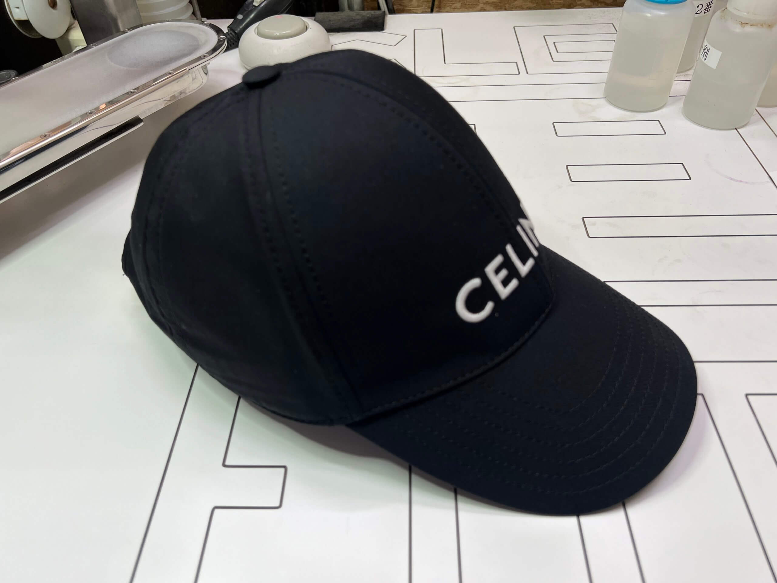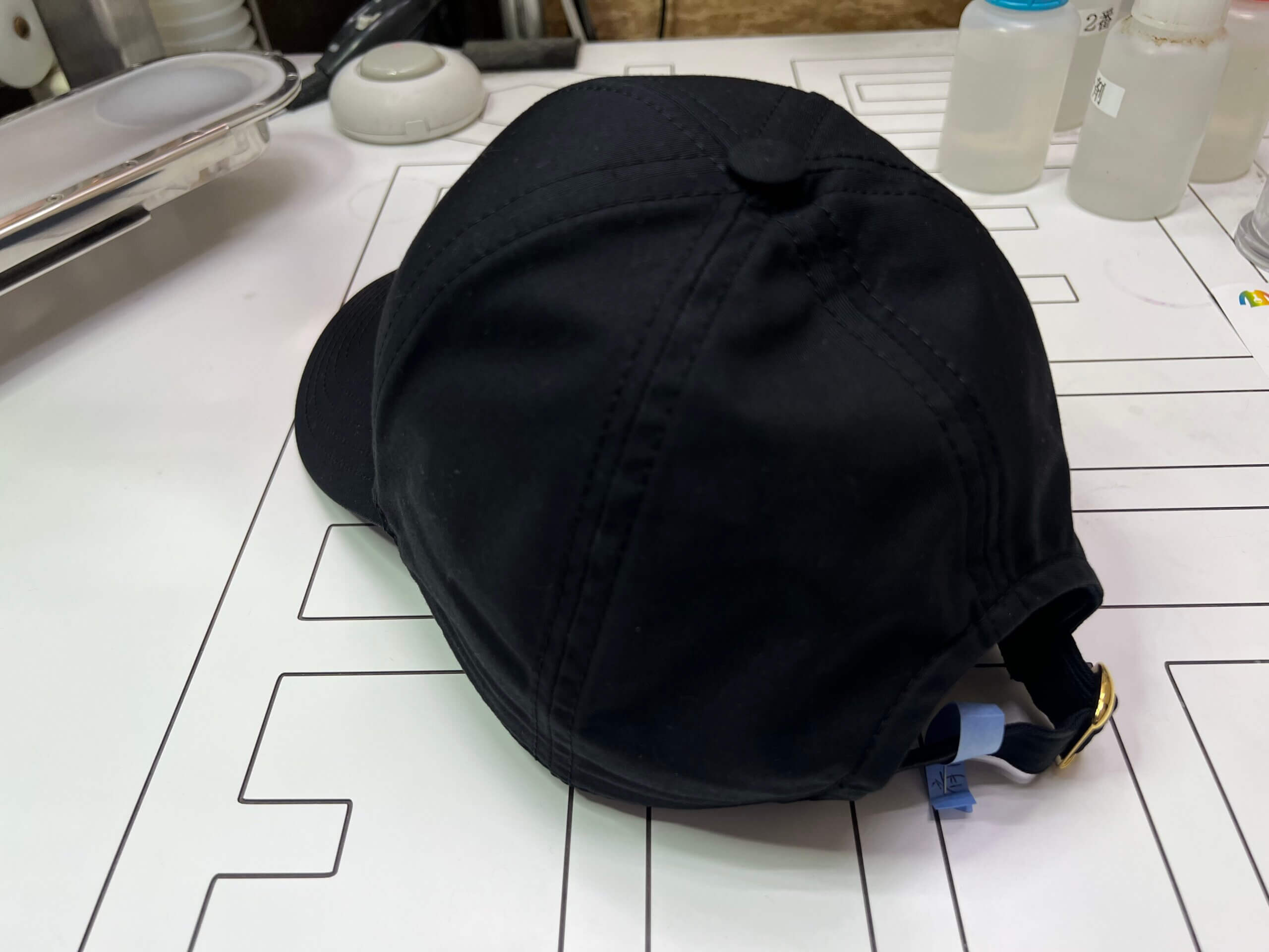 今回お預かりしたセリーヌのキャップになります。部分的に色が変わってしまったとかではなく、全体的に色が褪せていますね。これは先ほど説明した紫外線による影響かと思われます。